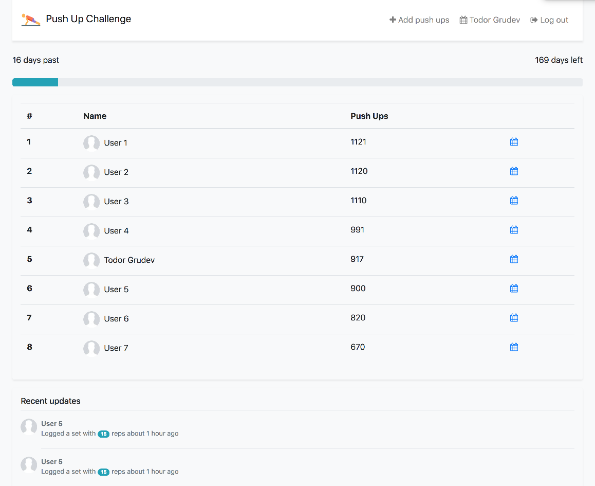 I didn’t want this one to be as strict as the first challenge and as I mentioned the main goal is to be consistent, some of the folks has missed a day or two, but that’s not the issue. The motivation level is kept high as you drop out from the Leaderboard if you haven’t done anything for 3 consiquent days. The current challenge will continue for 6 months, I would consider it a success if I am not the only one that’s still going after that period of time.